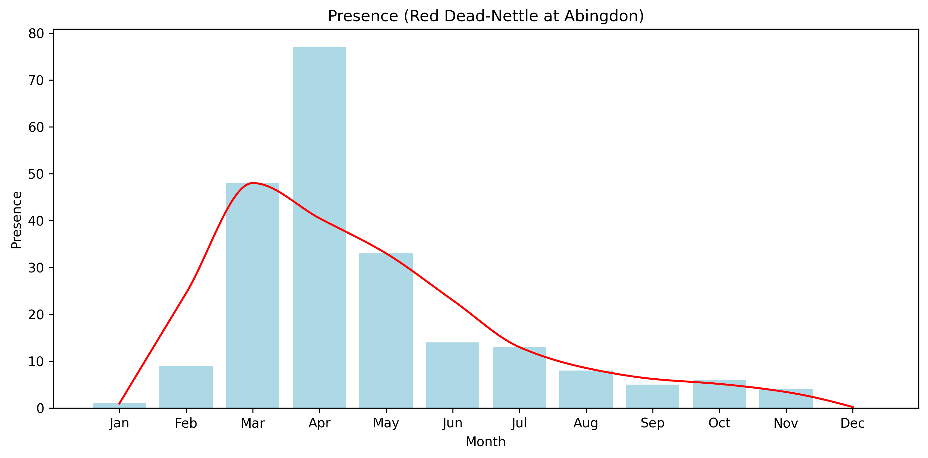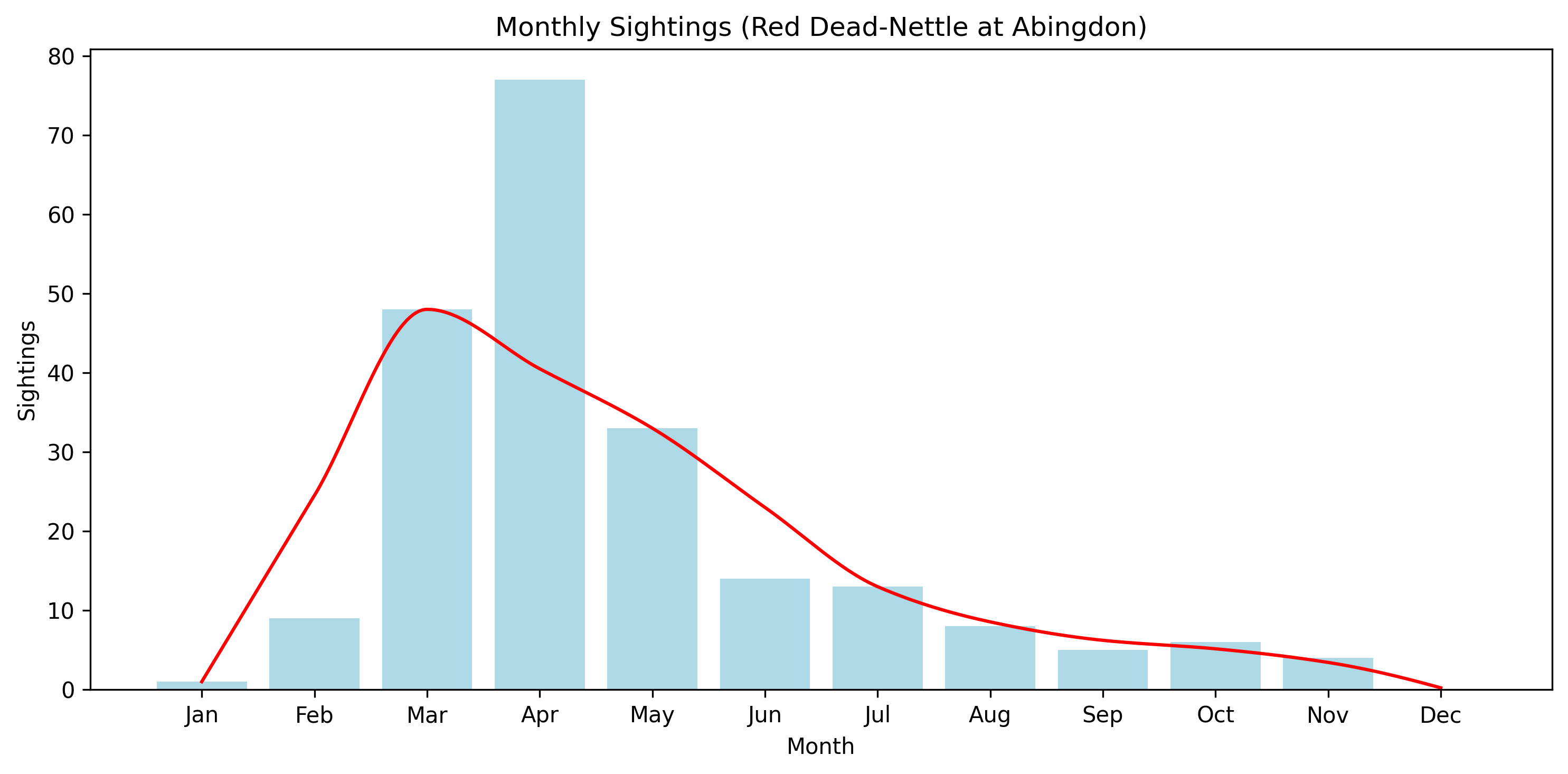 For species such as Red Dead-nettle, flowering may occur opportunistically across a wide seasonal window. The observed pattern reflects both biological flexibility and the likelihood of recording a low-growing, inconspicuous plant.